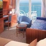 These staterooms are perfect if you want to bring the kids along. They sleep up to four guests and include a sitting area, two lower beds that convert into a queen-size bed and a pull out sofa to accommodate two more. Not to mention the floor-to-ceiling glass doors that open to a private balcony for the whole family to enjoy.